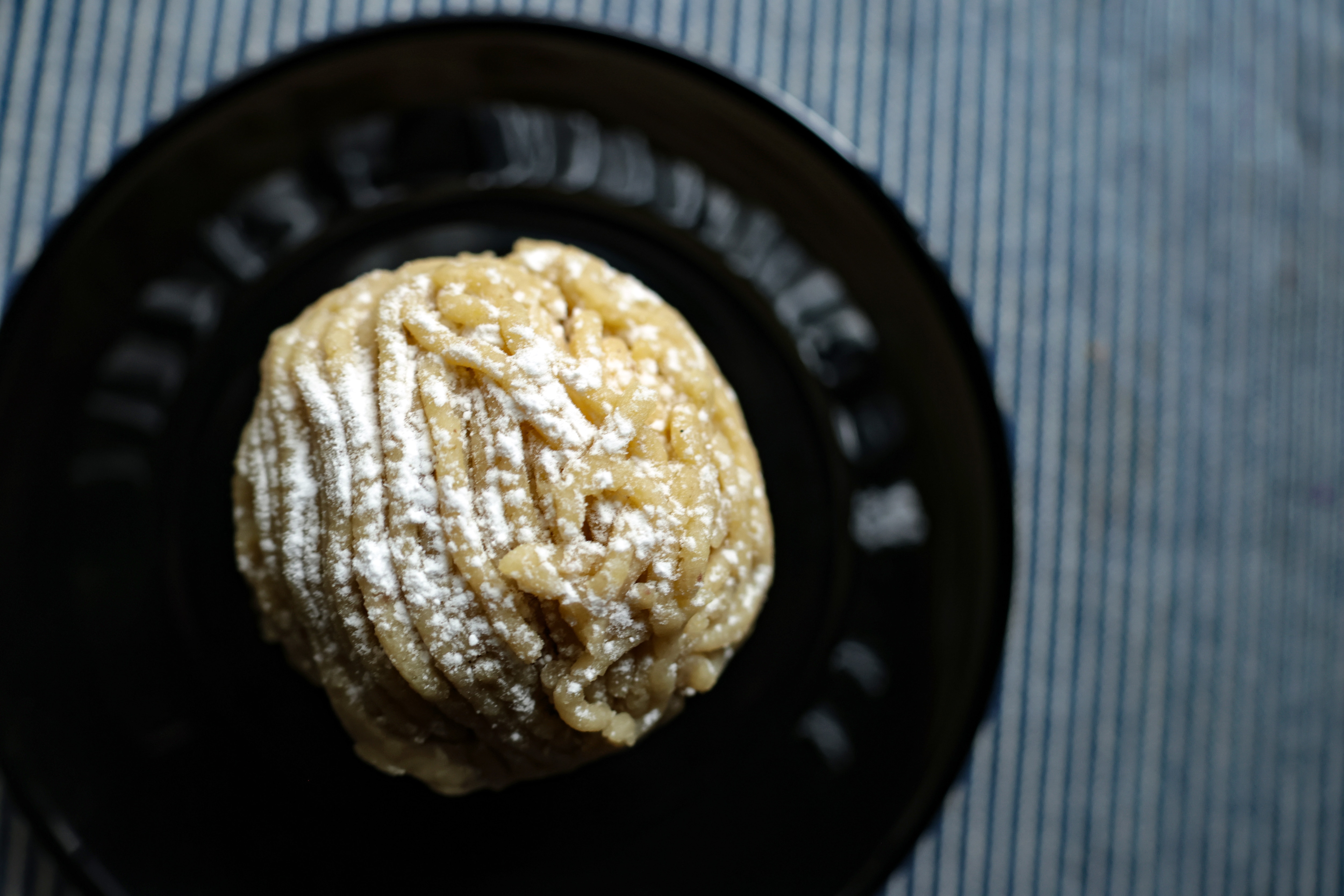 ル・ヴァン・リブレで人気を集めるのが、注文後に作られる「モンブラン」です。熊本産の栗と生クリームを合わせた濃厚なクリームを、サクサクのメレンゲ生地にたっぷり絞り出した特別な一品。