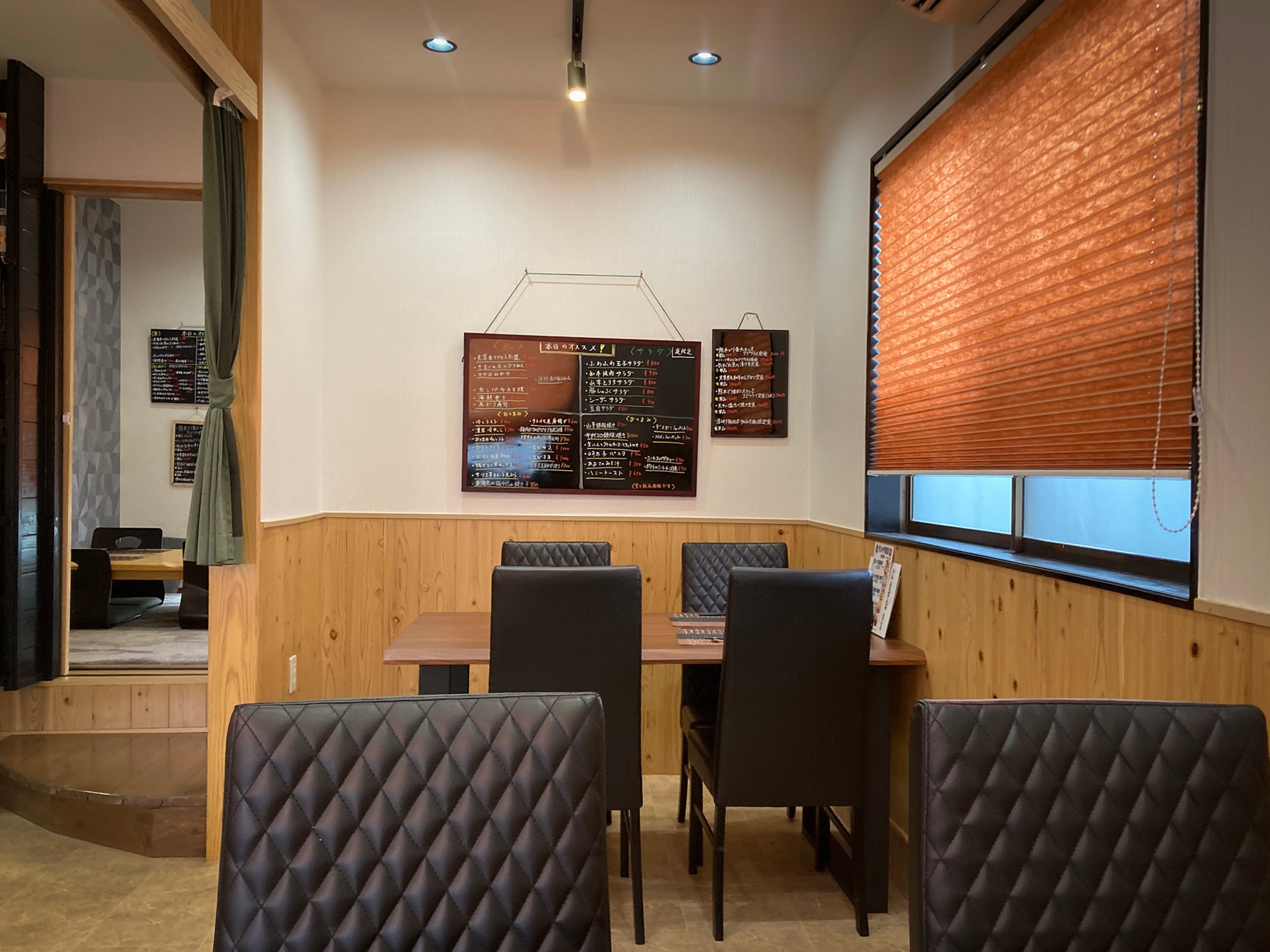 オープンしたばかりの店内は清潔感があり、木の温もりを感じる落ち着いた雰囲気。テーブル席や小上がりの座敷席があり、家族連れや友人同士でもゆったりと過ごせます。