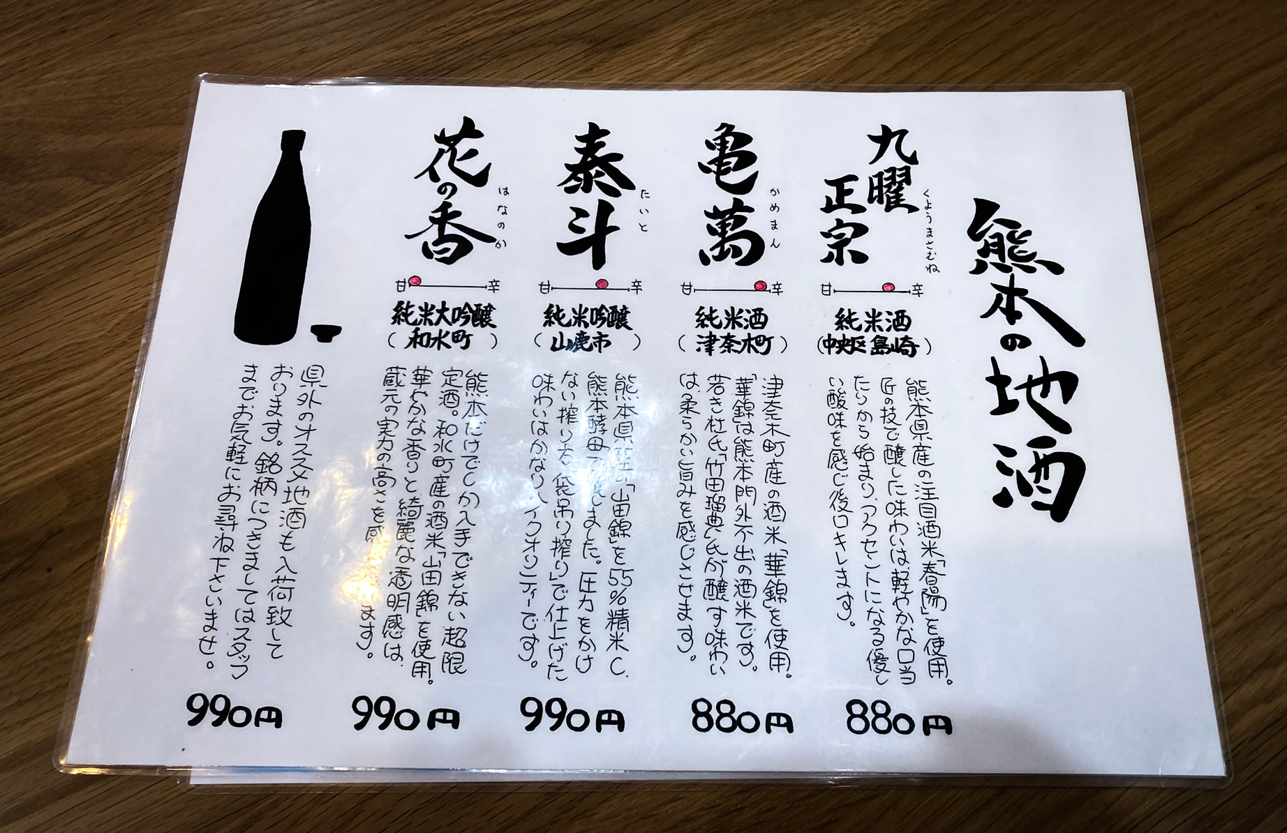 「蔵々」は夜も営業しており、熊本や天草の美味しい地酒が揃っています。熊本県国税局酒類鑑評会で優等賞を受賞した米焼酎「天草」など、選りすぐりの地酒がいただけます。