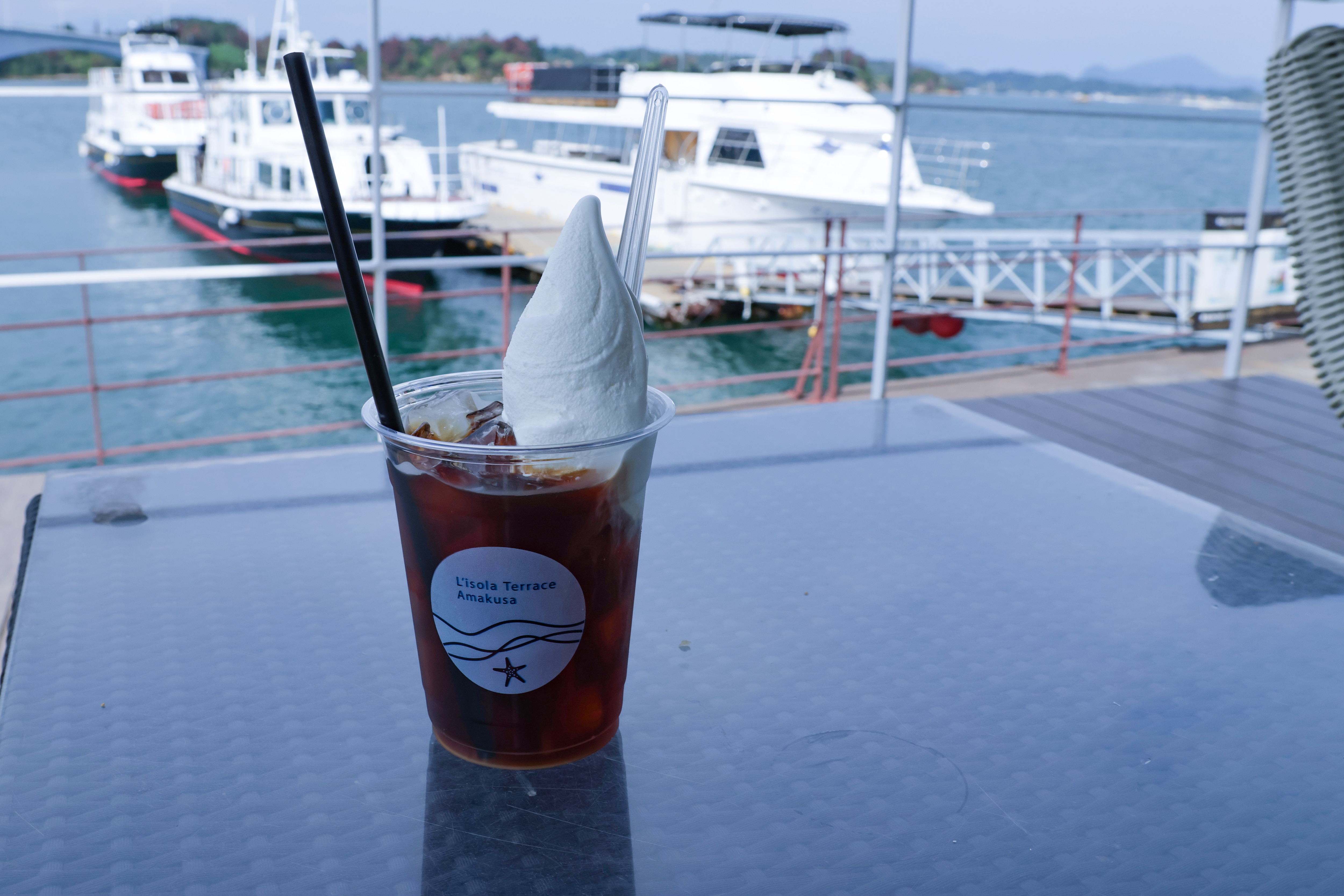 くつろぎのお供には「Island Stand(アイランドスタンド)」の本格ジェラートやフロート、香り豊かな珈琲がおすすめ。上の写真は、一番人気の島のコーヒーフロート。心地よい時間が流れる、天草ならではの癒しスポットです。